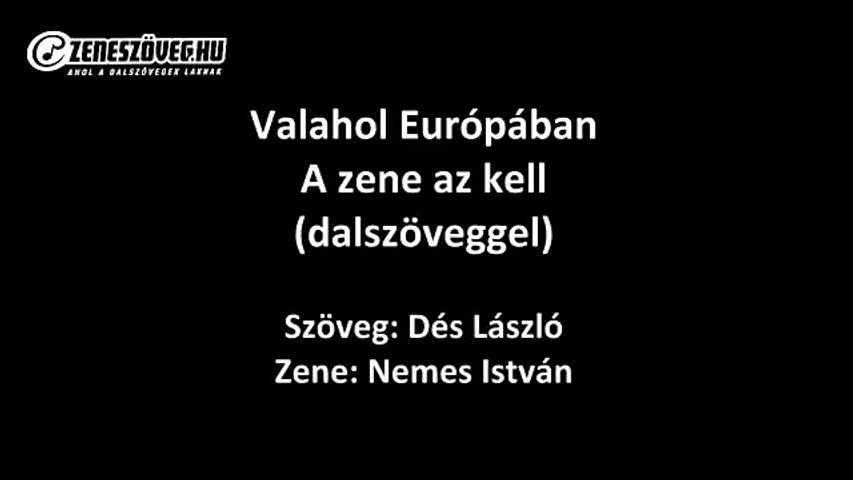 Bella8 a weboldalon a z a zene az kell dalszöveg mellett 0 valahol európában album és 16 valahol európában dalszöveg található meg. A zene az kell hogy ne vesszünk el hogy mégse adjuk fel. A zene az kell hogy ne vesszünk el hogy mégse adjuk fel mert a jó a rossz csak szó olyan ami sokszor változó de egy ismerős hang az megmarad máris érzed hogy védve vagy a dal egy biztos hely. Itt van aki csak néz és van aki beszél és van aki segít hogy ha kimerültél mert mindenki erős és életre való.