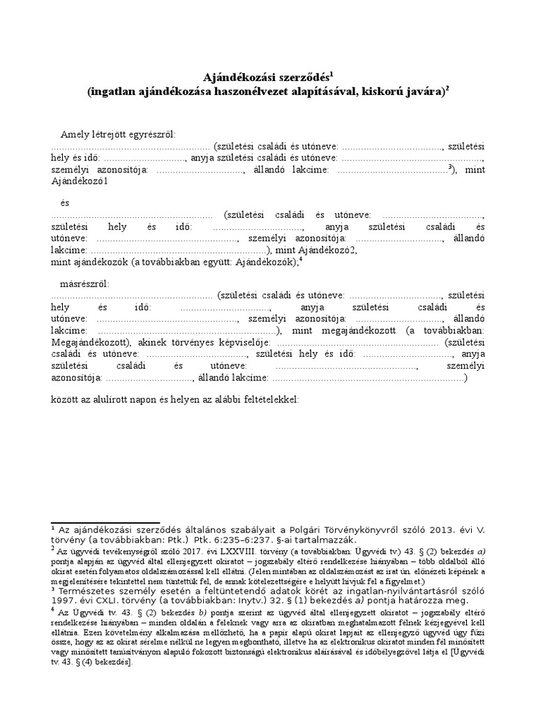 Ingatlan ajándékozási szerződés minta 2020 2021. Jelen ajándékozási szerződés 5 öt egyenként 2 kettő magyar nyelvű oldalból álló példányban készült amelyet a felek elolvasás és értelmezés után mint akaratukkal mindenben megegyezőt helybenhagyólag aláírásukkal látnak el. Ajándékozási szerződést kell kötni minden esetben. Adásvételi szerződés ingo ajándékozási szerződés ajándékozási szerződés haszonélvezettel elállás szerződéstől közös megegyezéssel történő megszüntetés felmondás elfogadása.