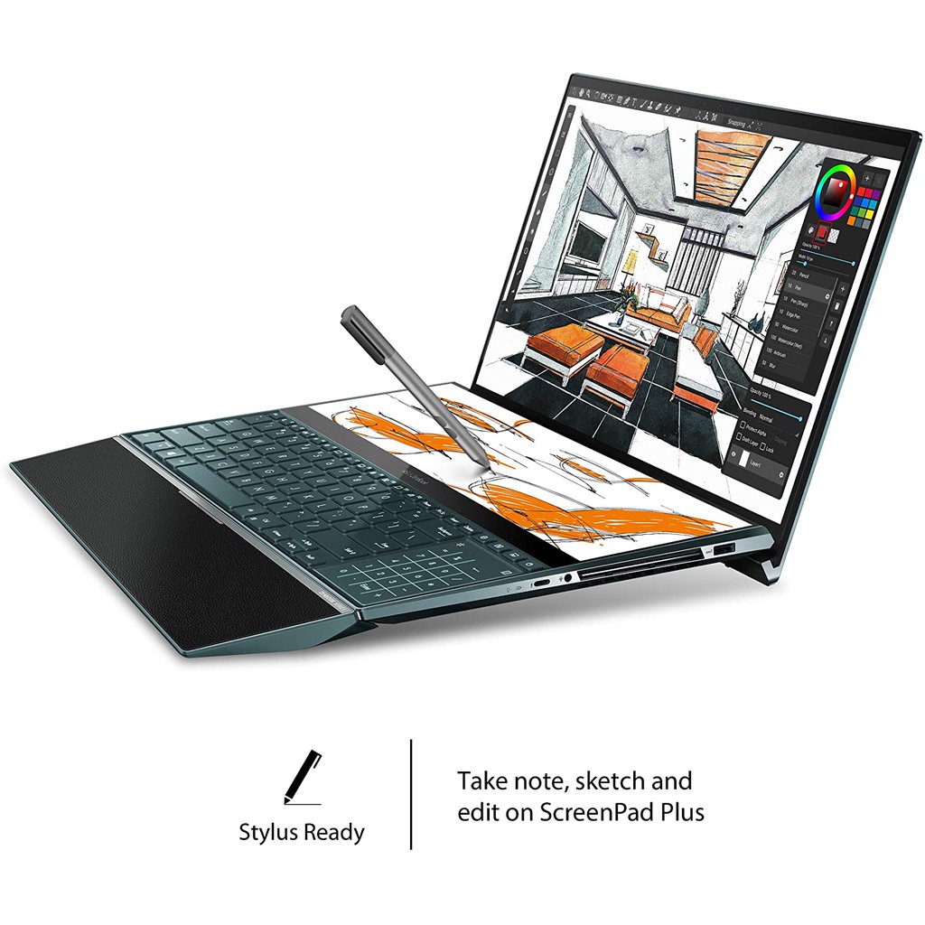 Designed to give you the ultimate edge in workflow efficiency the unique design features a full width 4k asus screenpad plus that works seamlessly with the main 4k uhd oled display. 2 4ghz intel core i9 9980hk octa core 16mb cache up to 5ghz graphics. This ultrapowerful combination ensures that zenbook pro duo takes professional quality tasks in its stride such as multi layer photo or video editing 3d graphics rendering or even game live streaming.