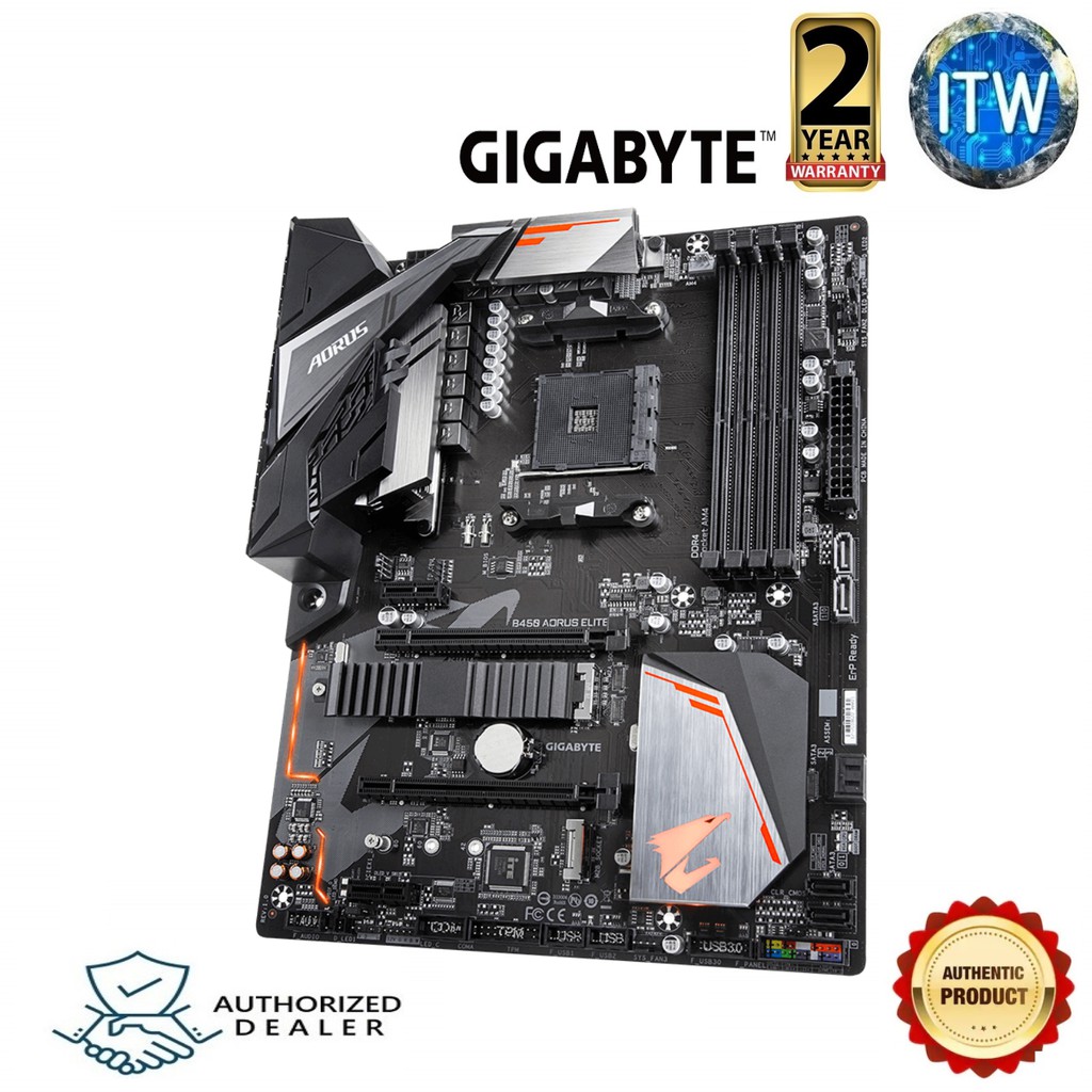Gigabyte b450 aorus elite amd ryzen am4 atx m 2 thermal guard hdmi dvi usb 3 1 ddr4 motherboard. Gigabyte b450 aorus elite amd ryzen am4. Gigabyte b450 aorus pro wi fi amd ryzen am4 atx m 2 thermal guard with onboard wi fi hdmi dvi usb 3 1 gen 2 ddr4 motherboard 4 5 out of 5 stars 1 269 129 99. 4x ddr4 3200 oc 2933 2667 2400 2133 mhz dimm slots dual channel ecc non ecc unbuffered max capacity of 64gb slots. Amd b450 aorus motherboard with hybrid digital pwm dual m 2 with one thermal guard rgb fusion 2 0 gigabyte gaming lan with bandwidth management cec 2019 ready supports amd 3rd gen ryzen 2nd gen ryzen 1st gen ryzen 2nd gen ryzen with radeon vega graphics 1st gen ryzen with radeon vega graphics athlon with radeon vega graphics processors.