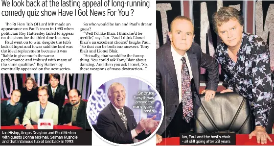 With ian hislop paul merton angus deayton alexander armstrong. The tub of lard was on merton s team which went on to win supposedly despite attempts. Featuring tony slattery and filling in for roy hattersley the rt. When roy hattersley failed to appear for the 4 june 1993 episode it was the third time he had cancelled at the last minute he was replaced with a tub of lard credited as the rt.
