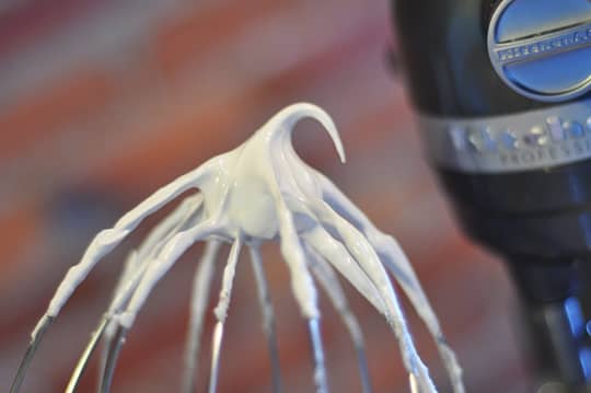Note that in order to achieve stiff peaks egg whites should be free of any yolk.