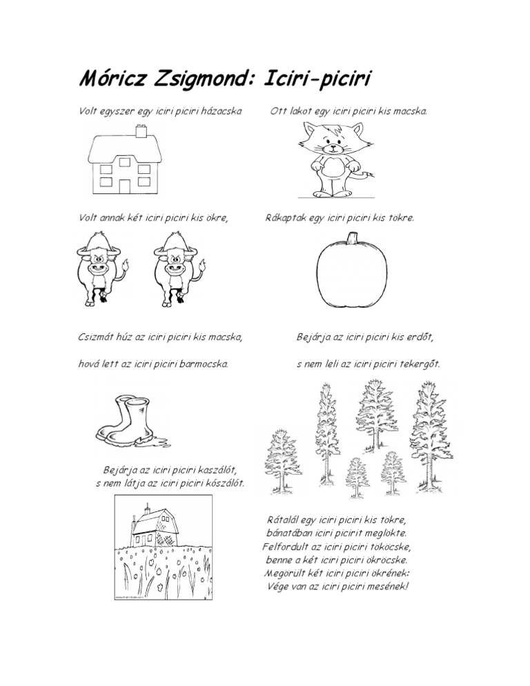 Iciri piciri kis mese. Ott lakott egy iciri piciri kis macska. Bejárja az iciri piciri. Volt egyszer egy iciri piciri házacska ott lakott egy iciri piciri kis macska volt annak két iciri piciri kis ökre rákaptak egy iciri piciri kis tökre. Tanítsd meg te is az unokádnak.