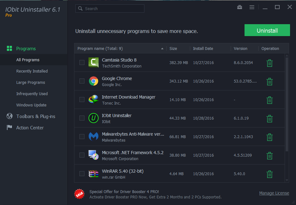 This release was created for you eager to use iobit uninstaller 6 1 full and without limitations. Then launch it once and closed it. Iobit uninstaller 6 1 pro v6 1 0 26 multilingual iobit uninstaller is a professional application specialized in uninstalling software from your computer and deleting registry files and other leftover items. Iobit uninstaller professional 6 is little and its interface is friendly.